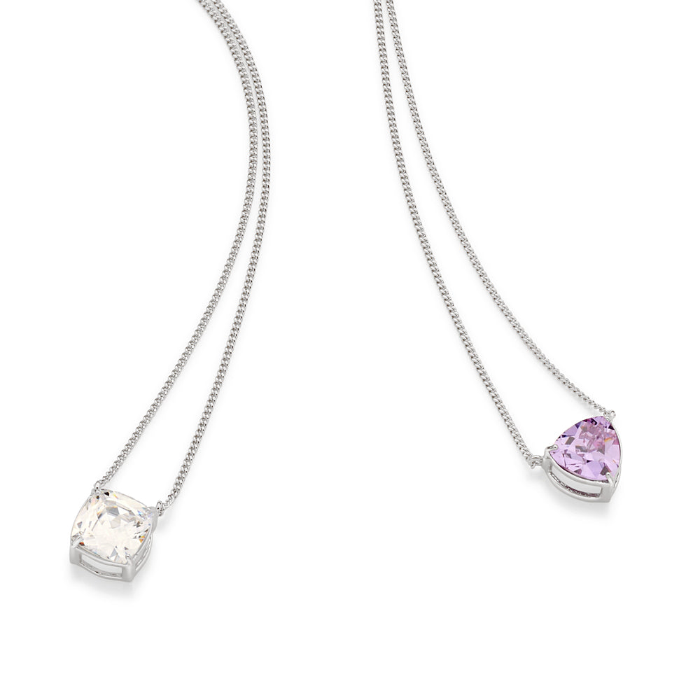 RHODIUM PLATED CHAIN WITH ZIRCONIA