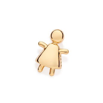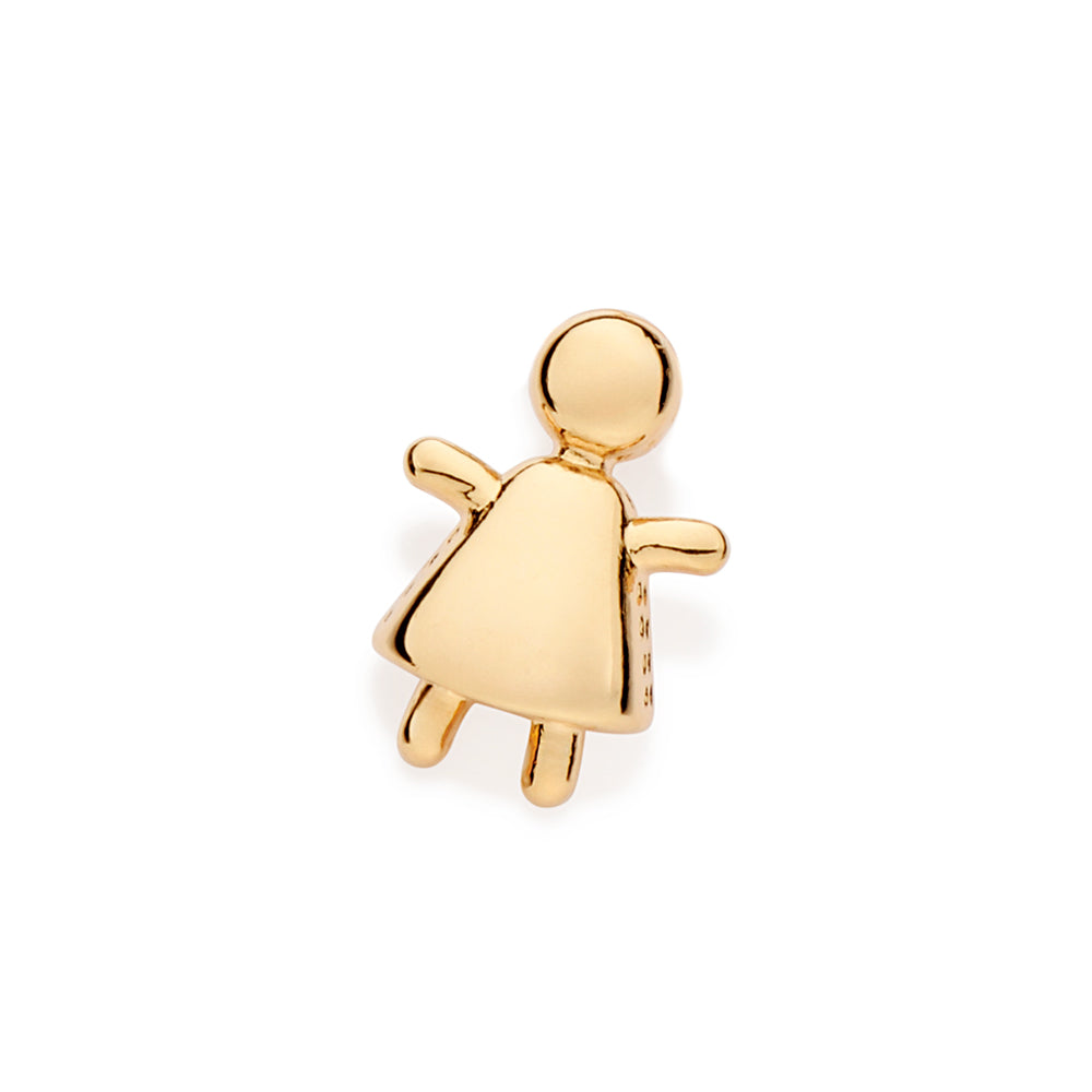 18k gold plated-plated pendant in the shape of a girl stick figure with dress. size: 1.2cm x 1cm (0.47in x 0.39in).