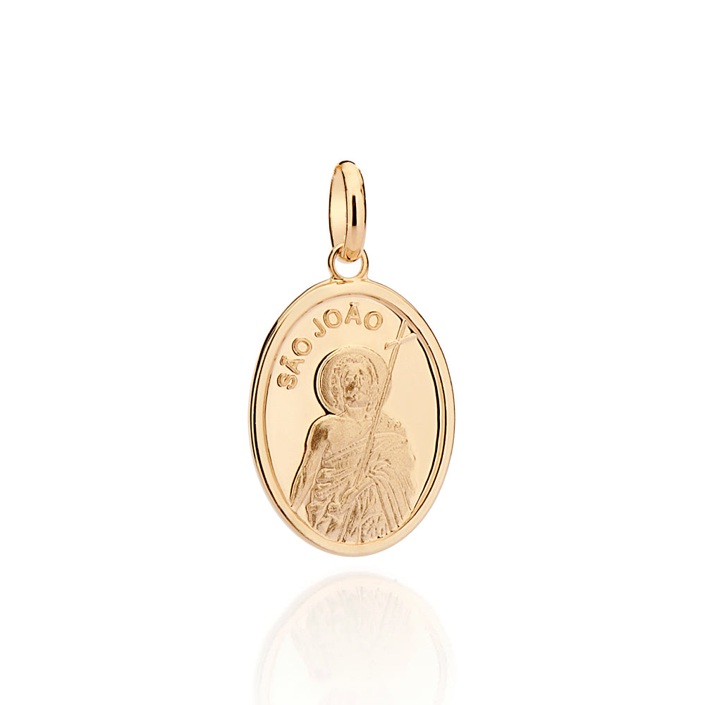 18k gold-plated oval pendant with the image of saint john engraved at the center. size: 2.8cm x 1.4cm (1.1in x 0.55in).