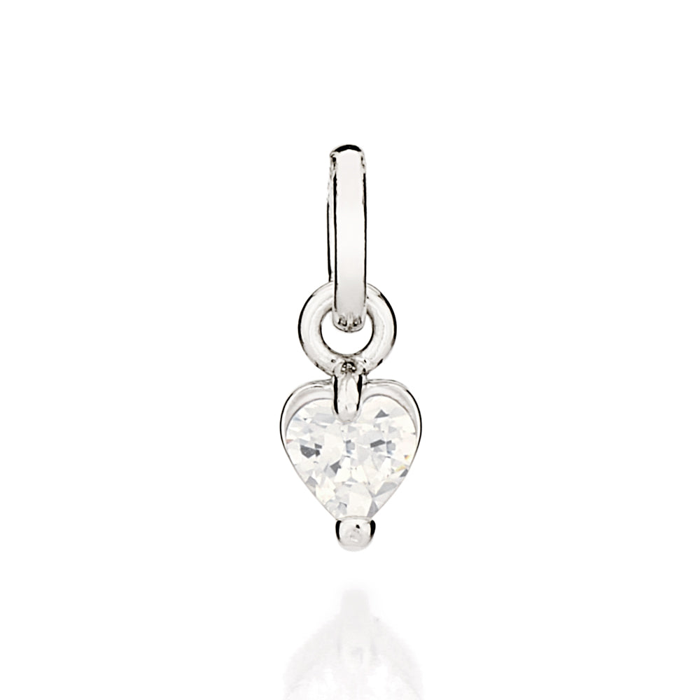Rommanel is proud to present our 2021 holiday collection, celebration. this collection is full of pieces that mix traditional and modern styles to create unique and stunning jewelry just for you. platinum pendant composed of one (1) white zirconia in the shape of a heart measuring 4x4mm. | size: 1.1cm x 0.4cm (0.43in x 0.16in). | stone: zirconia. | material: platinum plated. "