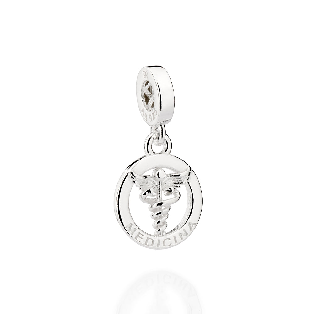 Silver 925 charm with the symbol for medicine at the center. size: 2.3cm x 1.2cm.