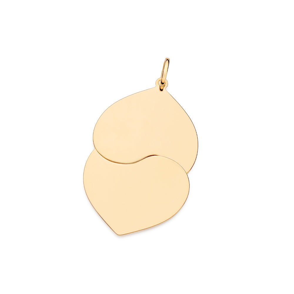 18k gold plated-plated pendant composed of two (2) hearts overlapping each other. size: 5.1cm x 2.7cm (2in x 1.06in).