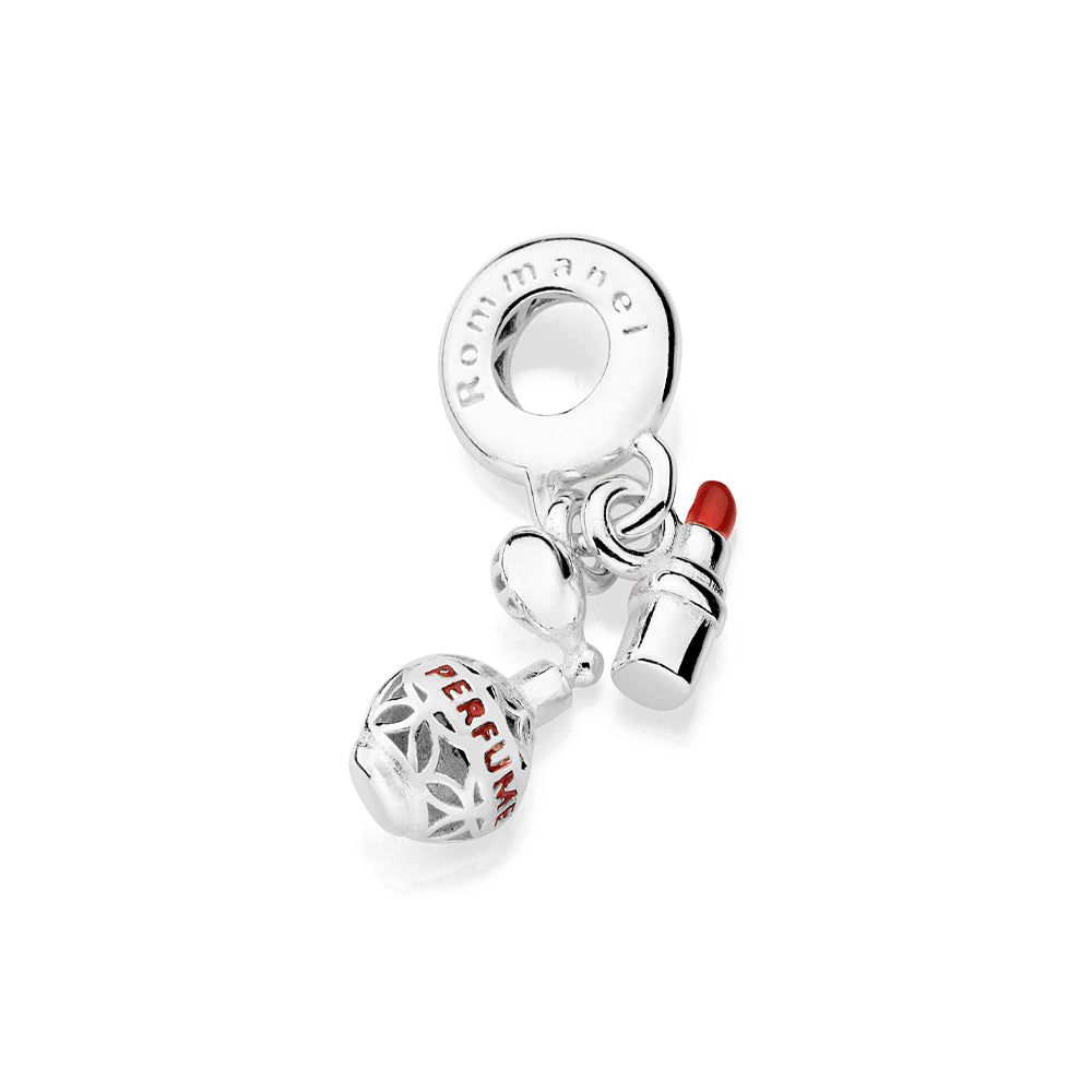 Silver 925 charm composed of a perfume bottle and a lipstick. size: 2.2cm x 0.7cm (0.9in x 0.27in)."" "