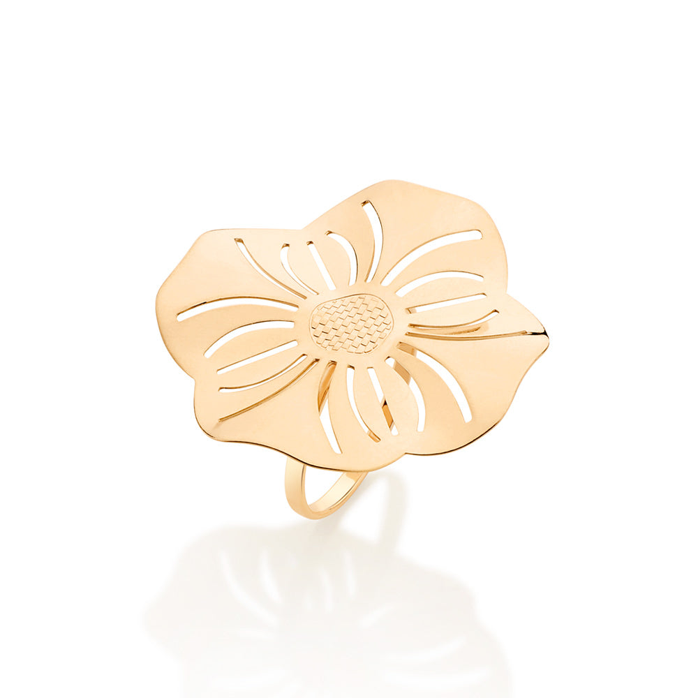 Rommanel's newest collection by Ana hickmann brings the beauty and glamour of the caribbean waters. inspired by the tropical climate and vibrant colors of the caribbean, the collection features pieces that convey the magical, joyful and contagious energy of curaã‡ao, a dutch island located in the caribbean sea. gold plated ring composed of a detailed flower as the centerpiece. | material: 18k gold plated.â | also available in rhodium. (licensed jewelry collection Ana hickmann 21st edition)"