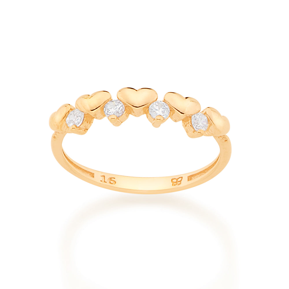 "DESCRIPTION: ROMMANEL INTRODUCES ITS NEWEST COLLETION: ROOTS, A JEWELRY LINE THAT EXPRESSES THE ESSENCE AND ORIGINS OF BRAZILIAN ARTIST DUO SIMONE & SIMARIA. DIVIDED INTO THREE SUBCOLLECTIONS: OUR ESSENCE, SIMONE'S FAVORITES, AND SIMARIA'S FAVORITES, THE COLLECTION BRINGS PIECES THAT EVOKE FAITH, GRATITUDE, FAMILY AND THE LOVE FOR MUSIC. GOLD PLATED SKINNY RING COMPOSED OF FIVE (5) HEARTS ALTERNATING WITH FOUR (4) WHITE ZIRCONIAS MEASURING 2MM EACH. | MATERIAL: 18K GOLD PLATED. | ALSO AVAILABLE IN RHODIUM. (LICENSED JEWELRY COLLECTION SIMONE & SIMARIA 1ST EDITION)"