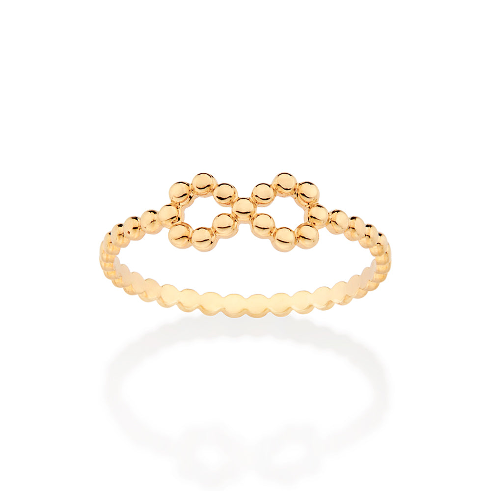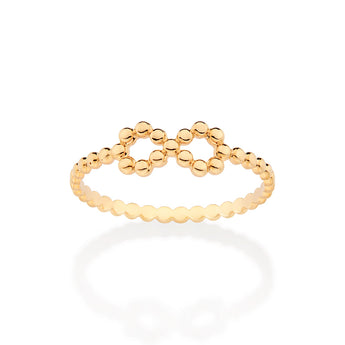 18k gold plated skinny ring composed of sphered band and one (1) infinity sign. size: 5 1/4 to 10 3/4.
