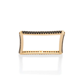 18k gold-plated square skinny ring studded by sixty (60) zirconias measuring 1mm each with black rhodium application (quantity of zirconias may change depending on size). size: 5 1/4 to 11 1/2.