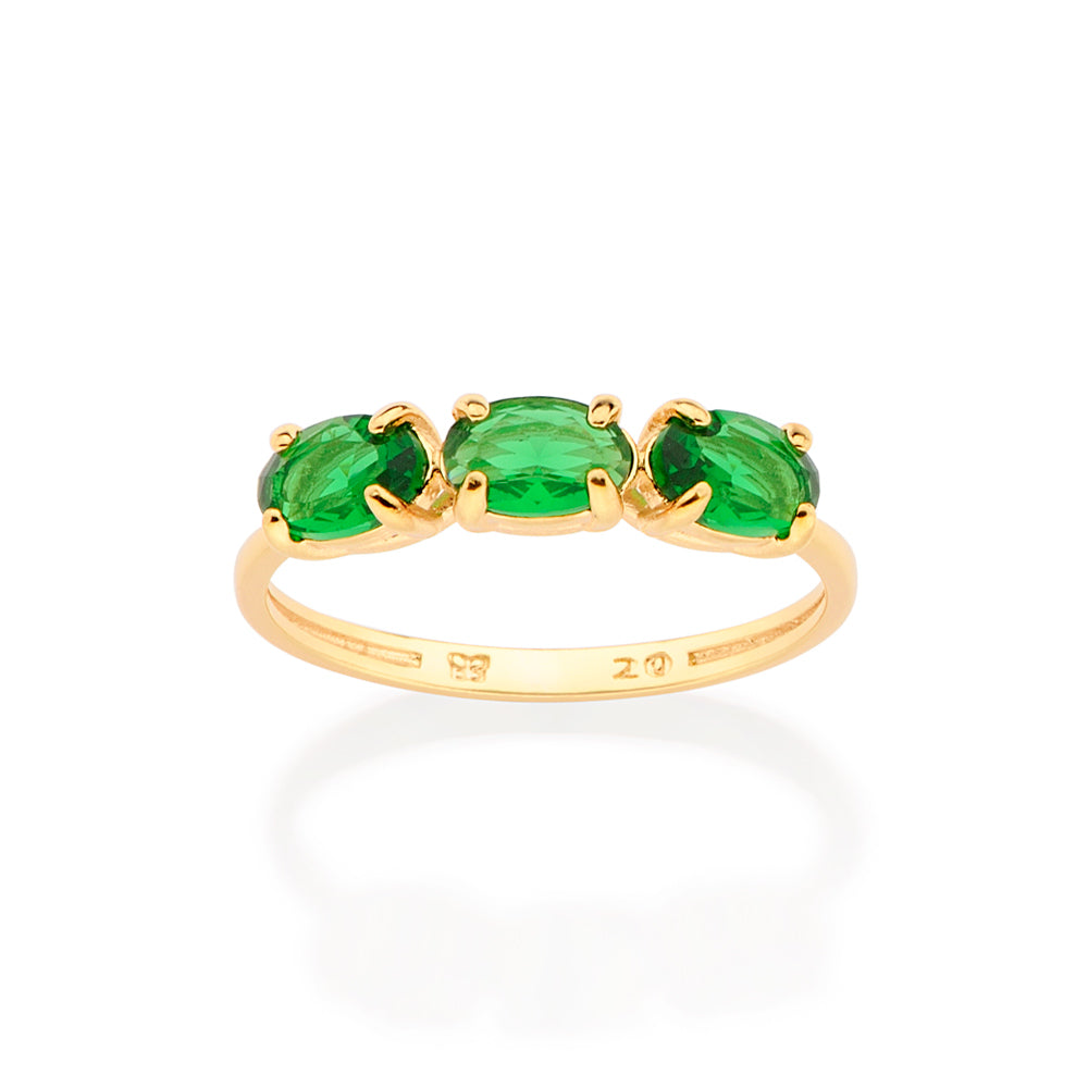 Gold plated skinny ring composed of 3 green crystals measuring 4x6mm each.
