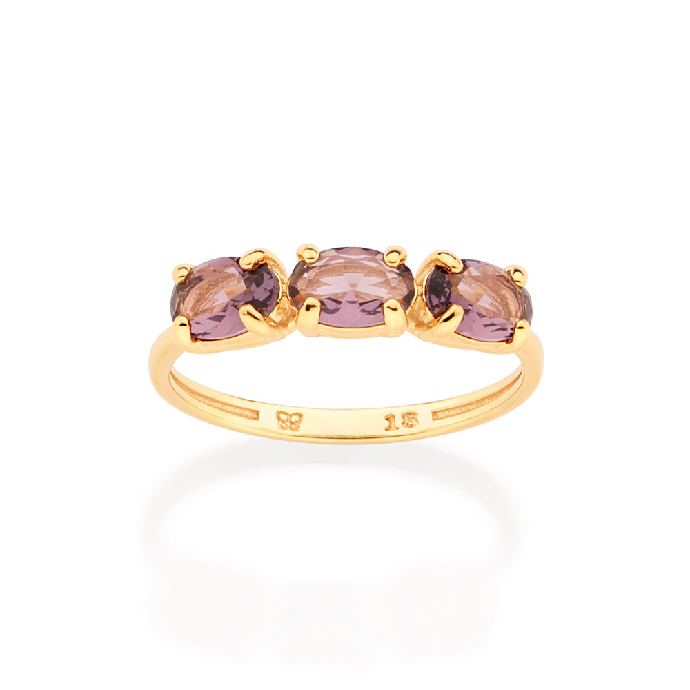 Gold plated skinny ring composed of 3 purple crystals measuring 4x6mm each.