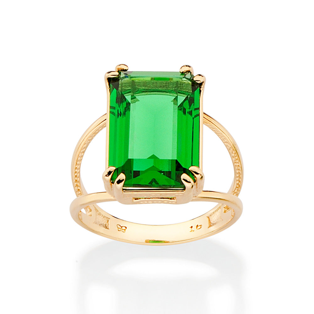 18k gold-plated solitaire ring composed of a hollow band and one (1) green rectangular crystal measuring 10x15mm. size: 6 to 10 3/4.