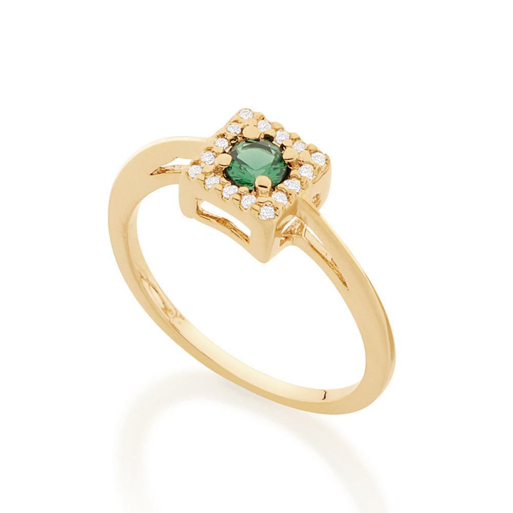 Rommanels dream collection by giovanna antonelli has as its main inspiration the world of dreams. gio antonelli and Rommanel always focus on bringing modern and on trend jewelry to ensure that you are always connected to the world of fashion. gold plated ring composed of a square surrounded with sixteen (16) white zirconias measuring 1mm each and one (1) green zirconia measuring 4mm at the center. some of our clients love wearing sets or giving them as gifts. this one is perfect for both! | material: 18k gold plated. | also available with blue or white zirconia and/or rhodium. (licensed jewelry collection giovanna antonelli 12th edition)