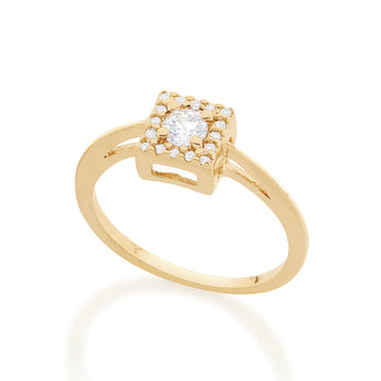 Rommanels dream collection by giovanna antonelli has as its main inspiration the world of dreams. gio antonelli and Rommanel always focus on bringing modern and on trend jewelry to ensure that you are always connected to the world of fashion. gold plated ring composed of a square surrounded with sixteen (16) white zirconias measuring 1mm each and one (1) white zirconia measuring 4mm at the center. some of our clients love wearing sets or giving them as gifts. this one is perfect for both! | material: 18k gold plated. | also available with blue or green zirconia and/or rhodium. (licensed jewelry collection giovanna antonelli 12th edition)