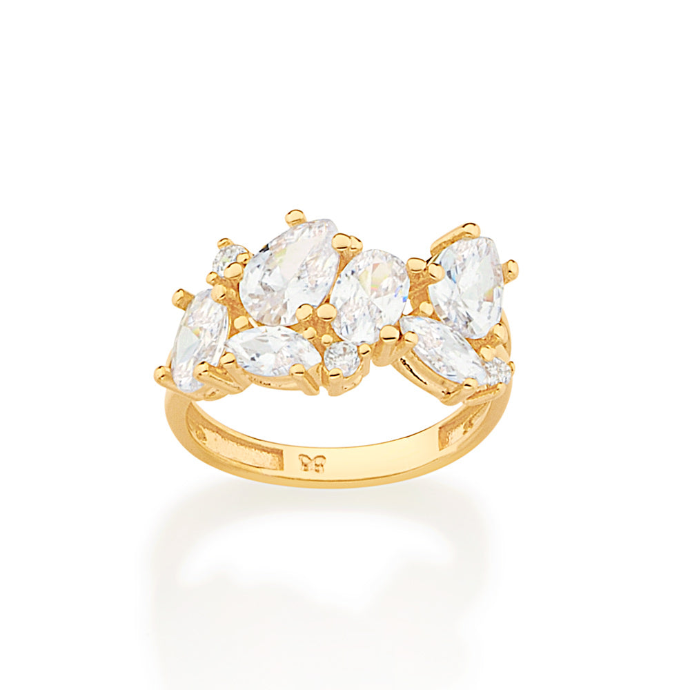 Rommanel is so proud to announce our ten years anniversary collection with Ana hickmann - celebrate! this collection is full of beautiful pieces for you to wear, just in time for the holidays. gold plated ring composed of mini flowers to create the band studded with ten (10) white zirconias measuring 2mm each at the center of the flowers. | stone: zirconia. | material: 18k gold plated. (licensed jewelry collection Ana hickmann - celebrate)"