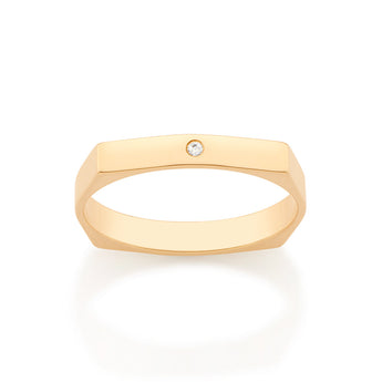 GOLD OCTAGON GEOMETRIC WEDDING BAND RING WITH STONE