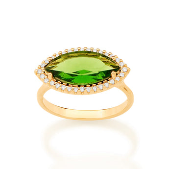 The bracelet features a synthetic green gemstone, carefully selected for its brilliance and vibrant color, complementing the gold tone perfectly.