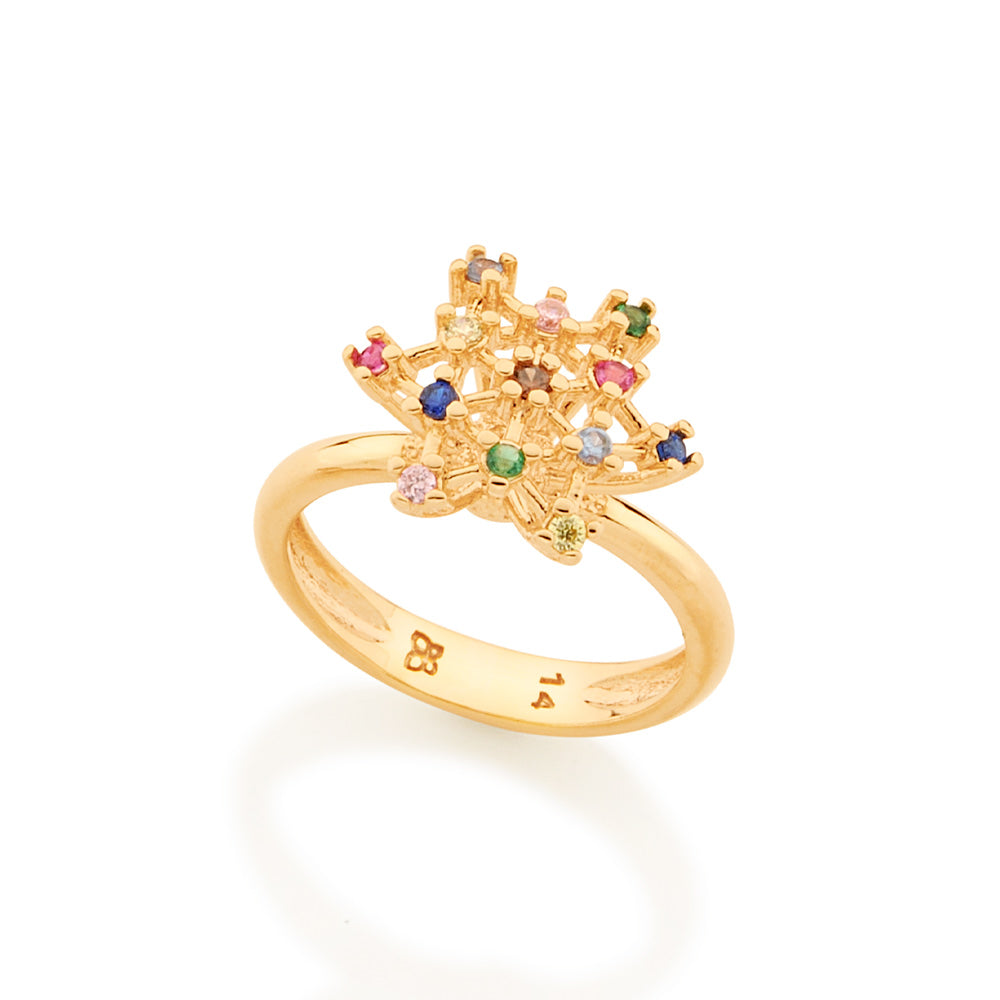 Rommanel and brazilian acrtess, giovanna antonelli, developed for her specially to honor women throughout the world. this collection contains gold plated and rhodium plated jewelry for every style. gold plated â ring composed of a geometric star shape studded with thirteen (13) cubic zirconias measuring 1.5mm each in multiple colors. | material: 18k gold plated. (licensed jewelry capsule collection gio antonelli - for her)"