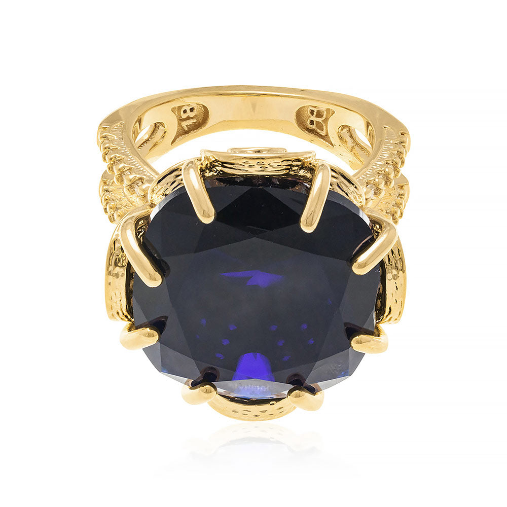 Gold plated ring with crystal and zirconia