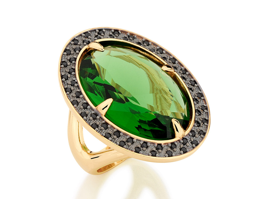Gold plated ring with crystal and zirconia