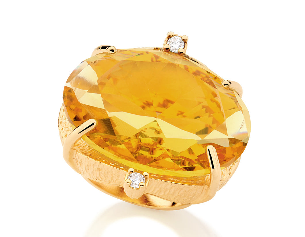 Gold plated ring with crystal and zirconia