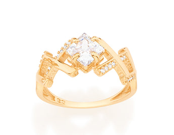 GOLD RING WITH CRYSTAL AND ZIRCONIA