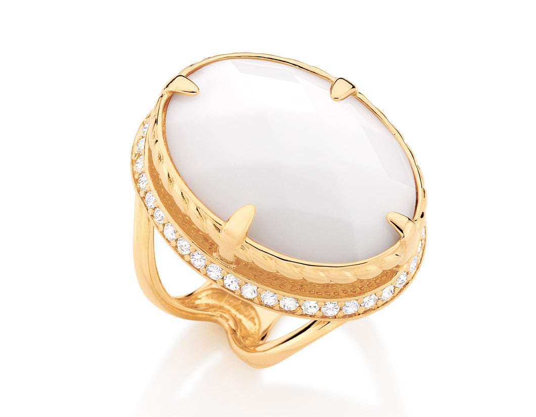 Gold plated ring with zirconia and stone