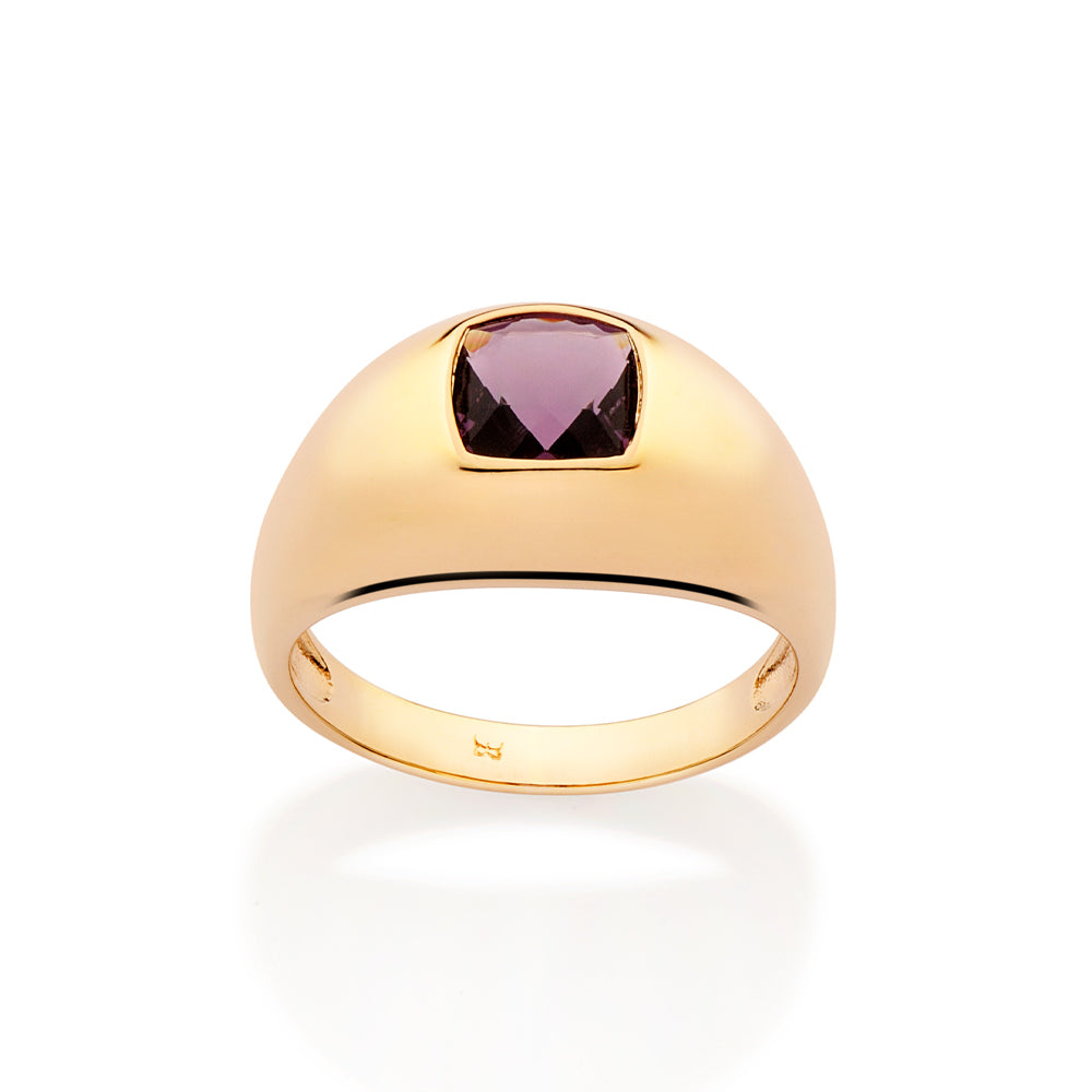 18k gold plated solitaire ring composed of one (1) purple crystal measuring 8x8mm.