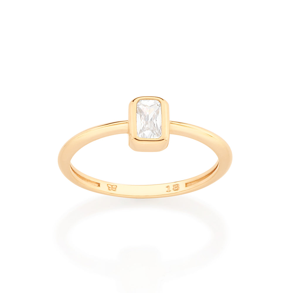 Gold plated solitaire ring composed of 1 white rectangular zirconia measuring 5x3mm.