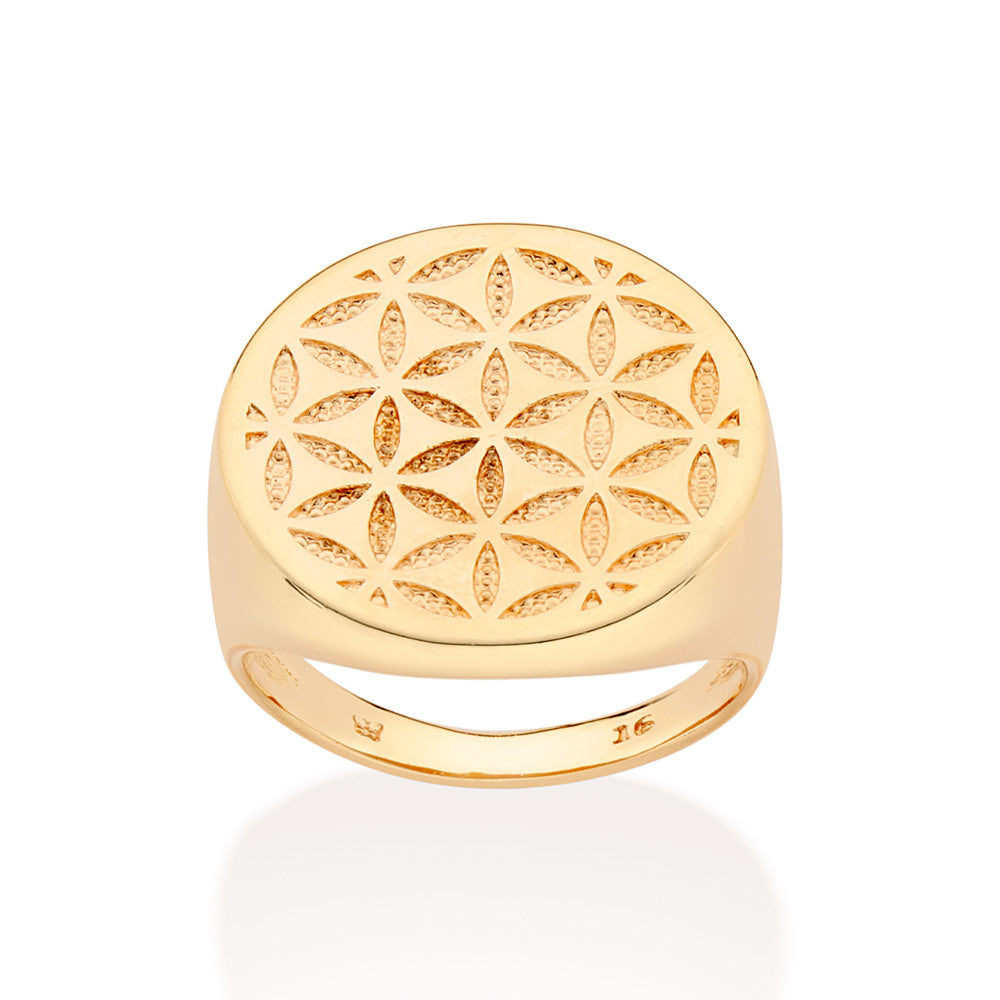 Gold plated maxi circle ring composed of a textured design. exclusive licensed jewelry of giovanna antonelli fashion jewelry collection