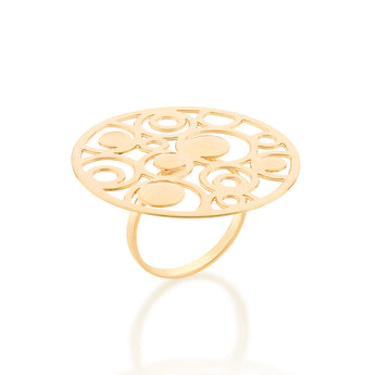 Rommanel's 2020 collection, colors of life, shows us that every color takes us to a special moment, memory, feeling, or experience in our life. by putting all those colors together, we have an amazing understanding and experience of life.â in our collection's subcategoy, sunlight, you will find pieces illuminate your look and inspire you to reach your full potential.â gold plated maxi ring composed of a large circle centerpiece with a design. | material: 18k gold plated.â (licensed jewelry collection 2020 - 1st cycle)"