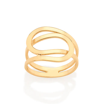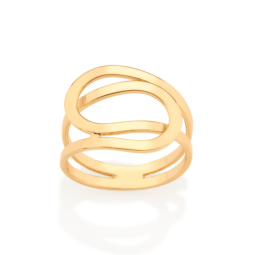 Gold plated maxi ring composed of a swirl pattern.