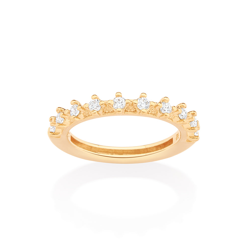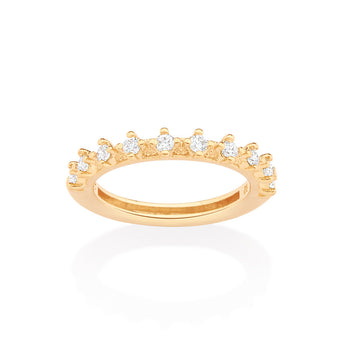 Gold plated wedding band studded by 10 white zirconias measuring 2mm each.