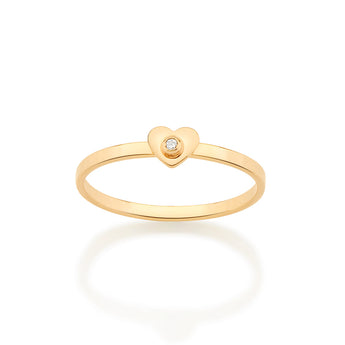 In order to celebrateMothers day, Rommanel has created a completely new collection that reflects a Mothers day love towards her child. gold plated skinny ring composed of a thin band with a tiny heart studded with one (1) white zirconia measuring 1.25mm at the center. | stone: zirconia. | material: 18k gold plated. "