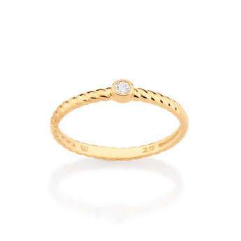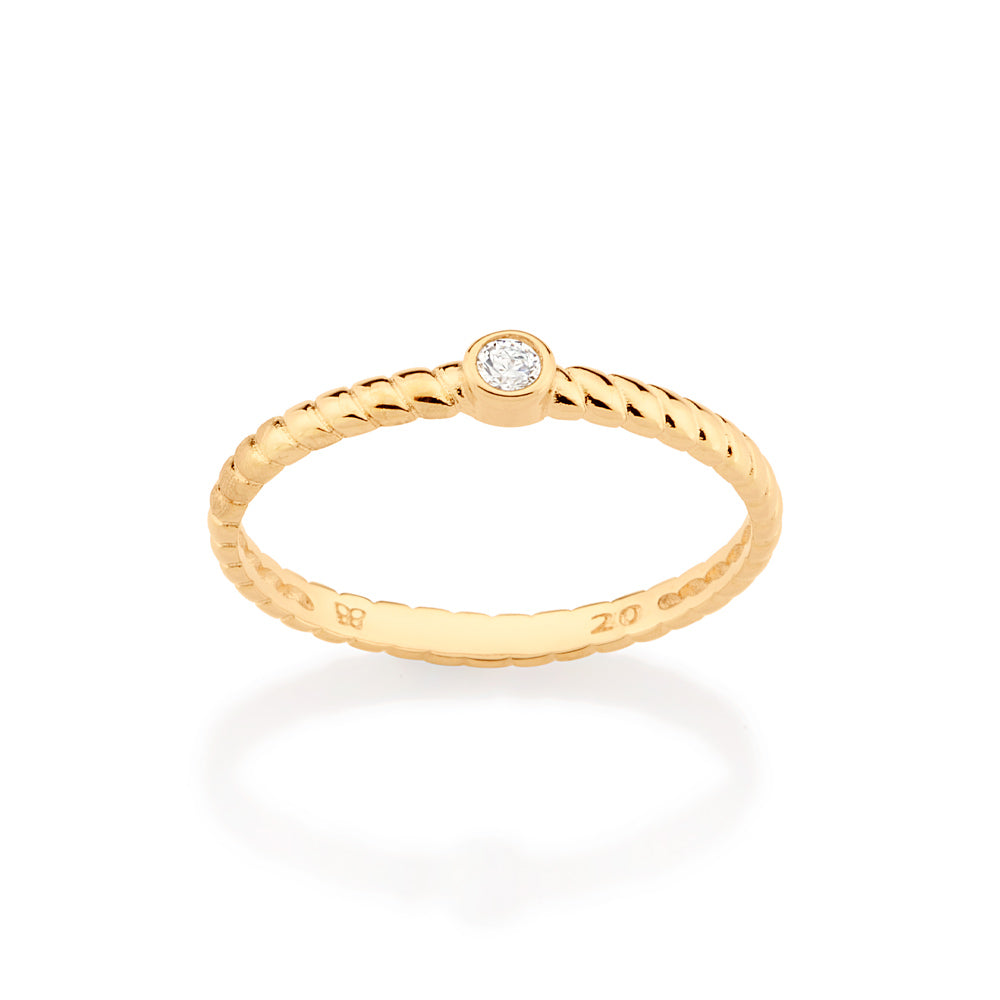 Gold plated, skinny ring composed of a twisted band and one 1 white zirconia measuring 2.25mm at the center. exclusive licensed jewelry of ""giovanna antonelli fashion jewelry"" collection "