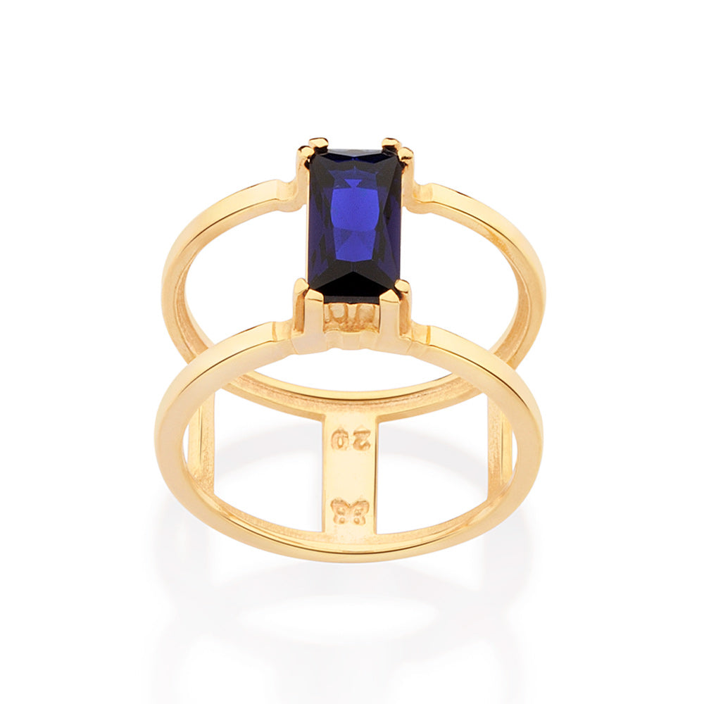 Gold plated double band ring studded by 1 blue crystal measuring 5x10mm at the center. exclusive licensed jewelry of giovanna antonelli fashion jewelry collection