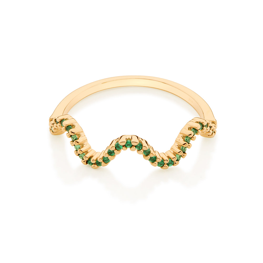 GOLD WAVE SKINNY RING IN GREEN