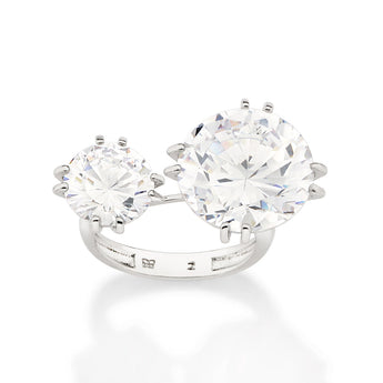 Platinum ring composed of one 1 white zirconia measuring 15mm and one 1 white zirconia measuring 10mm. exclusive licensed jewelry of ""giovanna antonelli fashion jewelry"" collection "