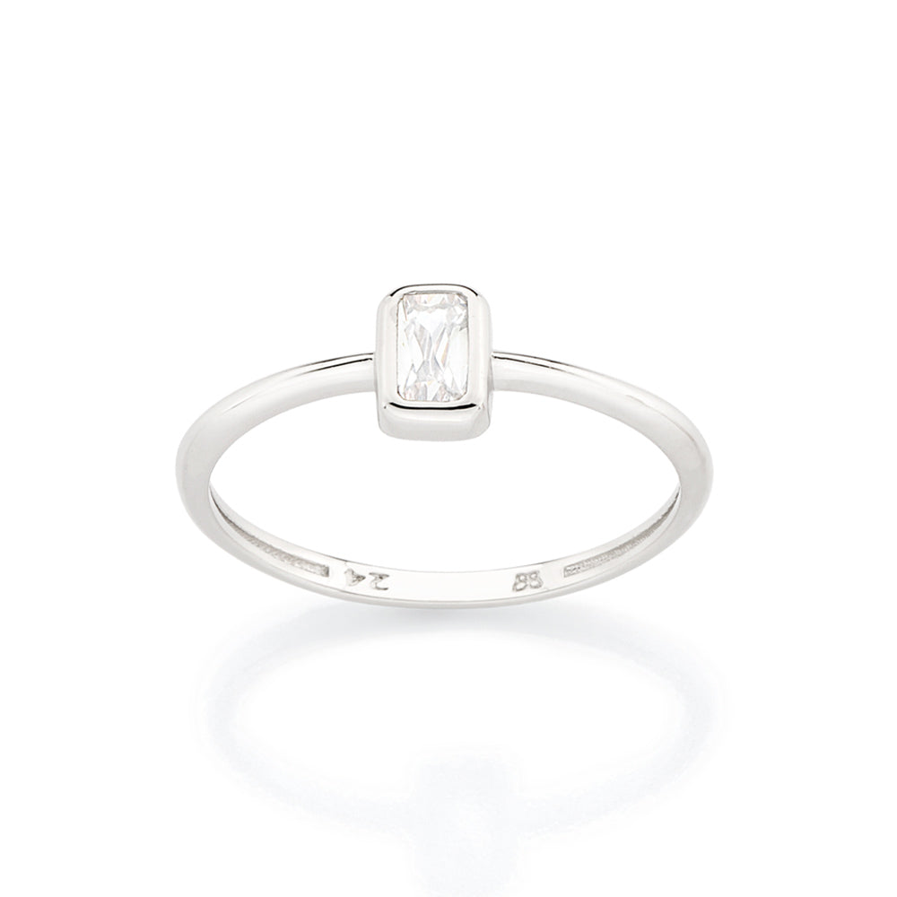 Platinum solitaire ring composed of 1 white rectangular zirconia measuring 5x3mm.