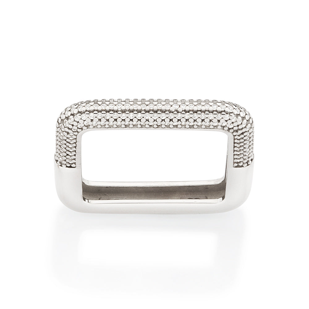 Platinum square ring studded with 190 white zirconias measuring 0.8mm each on the upper portion of the ring exclusive licensed jewelry of ""ana hickmann fashion jewelry"" collection"