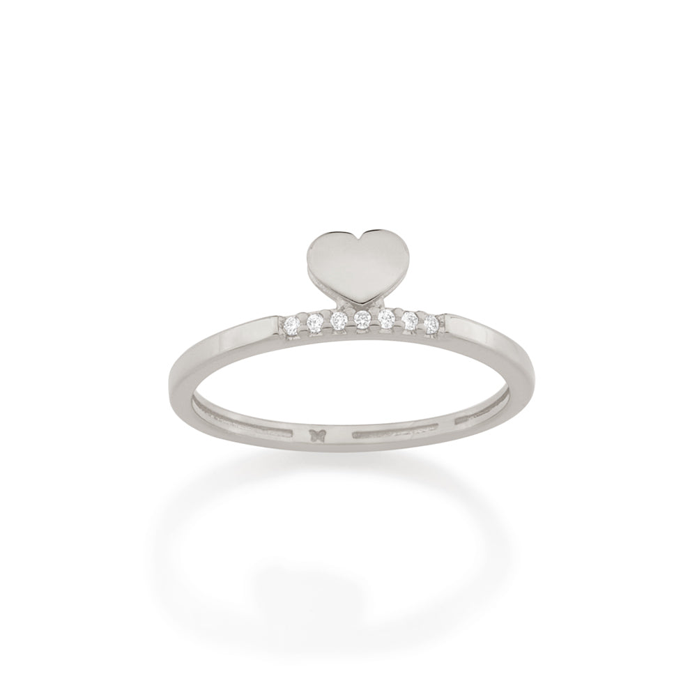 The perfect gift collection is hereTo celebratechristmas andâ all that it represents: the friendship, experiences, good timesâ and, of course, the hopes and dreams for the future. rhodium skinny ring featuring a small heart as the centerpiece and seven (7) white cubic zirconias measuring 1mm each.â | material: rhodium plated. | also available in gold plated. "