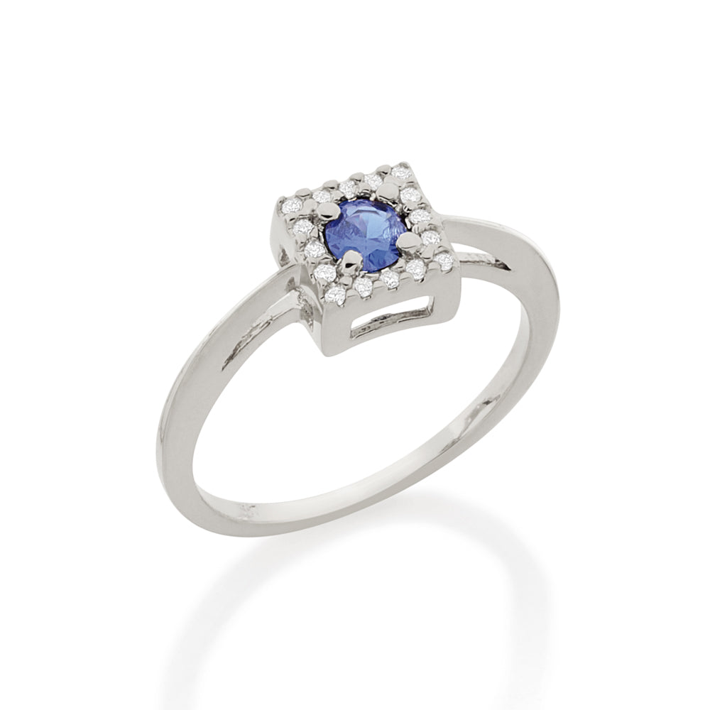 Rommanels dream collection by giovanna antonelli has as its main inspiration the world of dreams. gio antonelli and Rommanel always focus on bringing modern and on trend jewelry to ensure that you are always connected to the world of fashion. rhodium ring composed of a square surrounded with sixteen (16) white zirconias measuring 1mm each and one (1) blue zirconia measuring 4mm at the center. some of our clients love wearing sets or giving them as gifts. this one is perfect for both! | material: rhodium plated. | also available with green or white zirconia and/or gold plated. (licensed jewelry collection giovanna antonelli 12th edition)