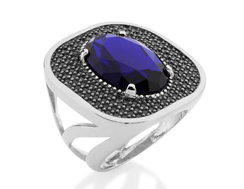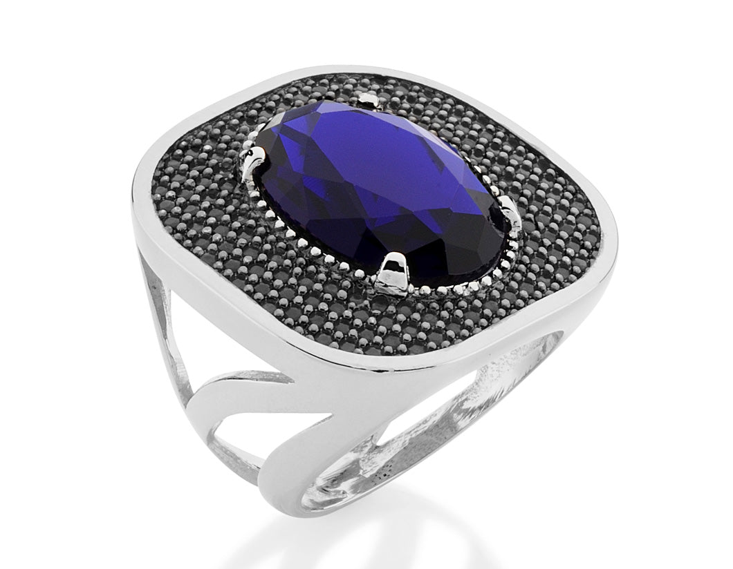 RHODIUM PLATED RING WITH CRYSTAL AND ZIRCONIA