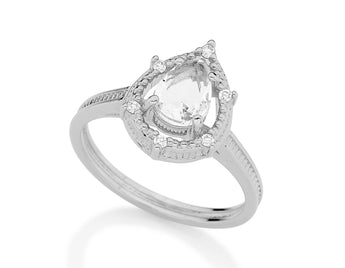 Rhodium plated ring with crystal and zirconia