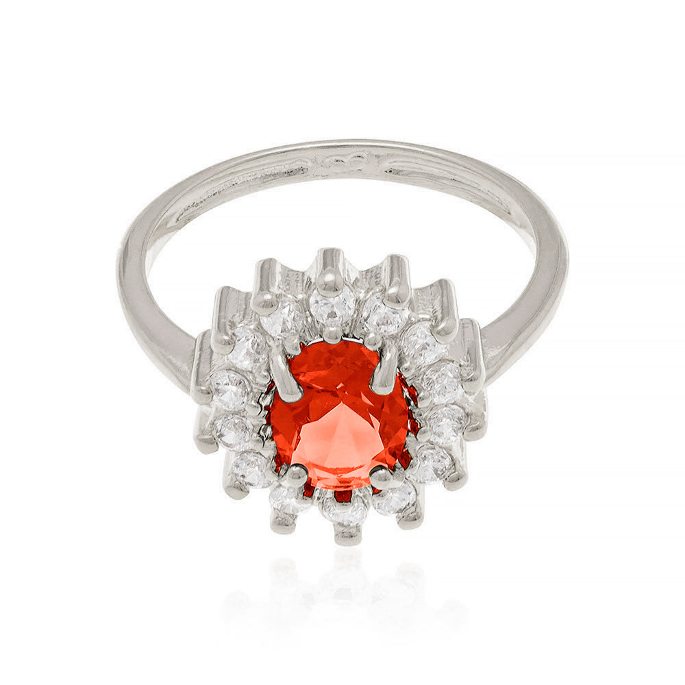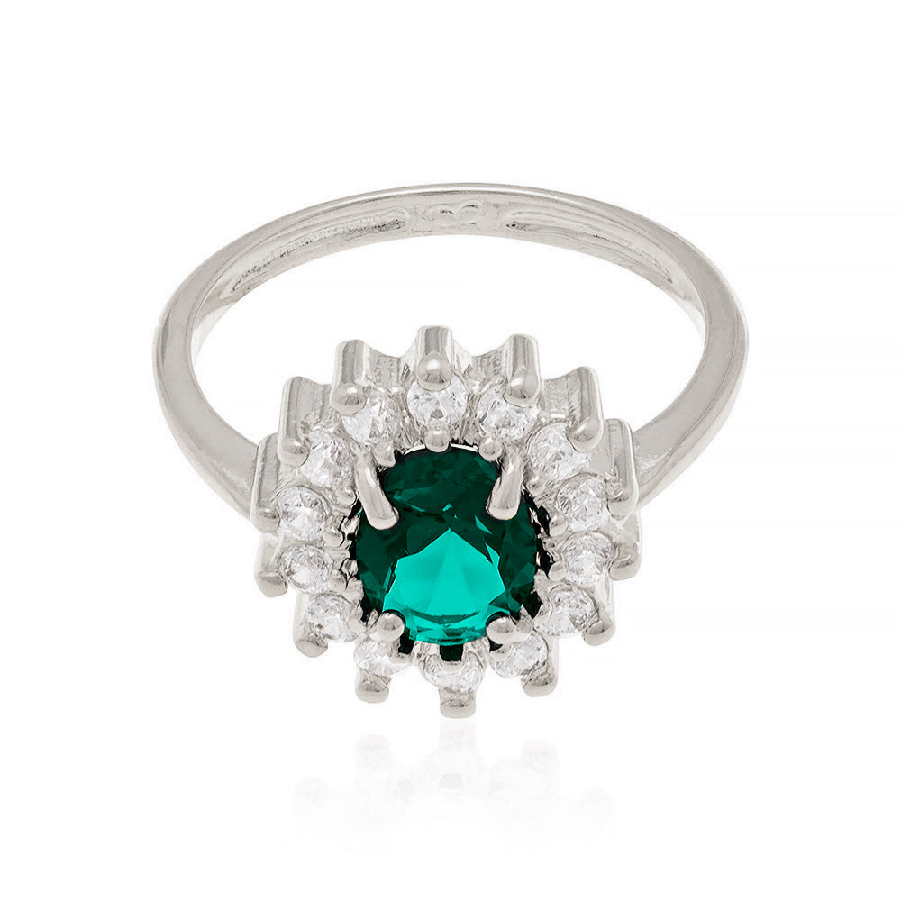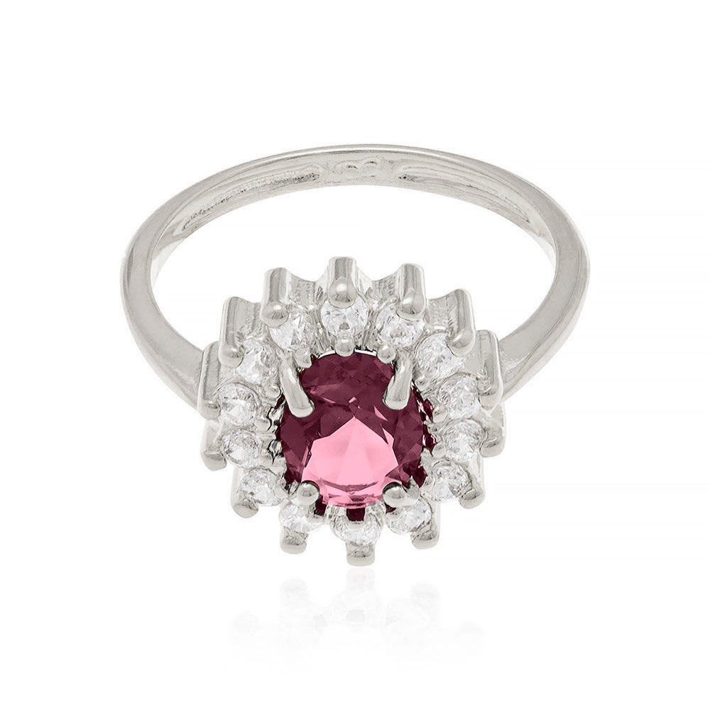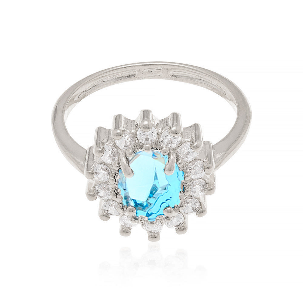 RHODIUM PLATED RING WITH CRISTAL AND ZIR