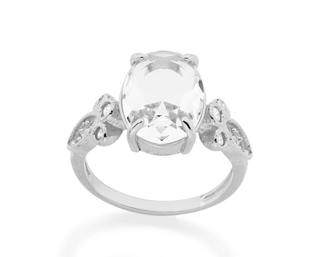 Rhodium plated ring with crystal and zirconia