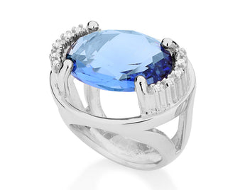 RHODIUM PLATED RING WITH CRYSTAL AND ZIRCONIA