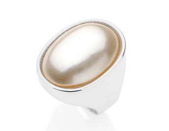 Rhodium plated ring with pearl
