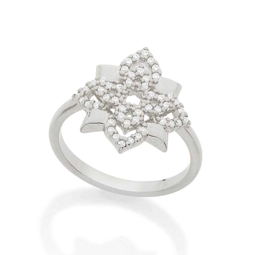 RHODIUM PLATED RING WITH ZIRCONIA