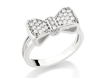 RHODIUM PLATED RING WITH ZIRCONIA