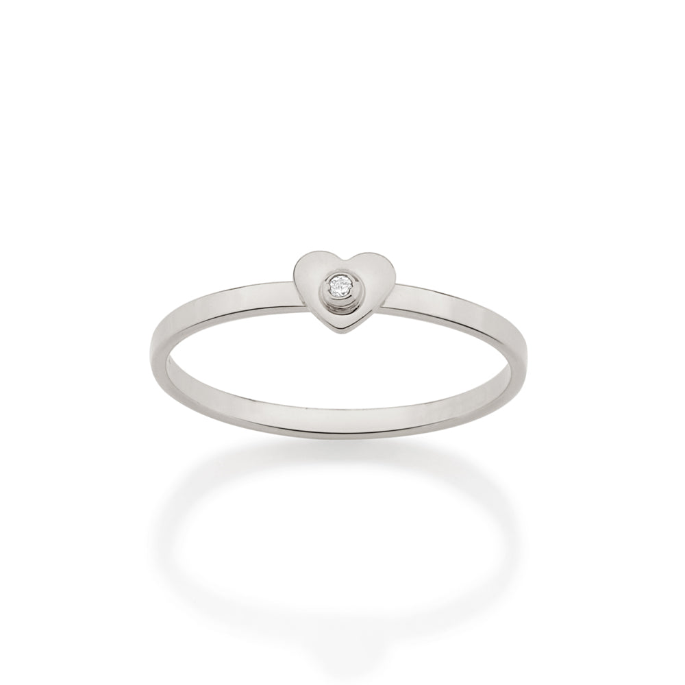 In order to celebrateMothers day, Rommanel has created a completely new collection that reflects a Mothers day love towards her child. rhodium skinny ring composed of a thin band with a tiny heart studded with one (1) white zirconia measuring 1.25mm at the center. | stone: zirconia. | material: rhodium plated. "