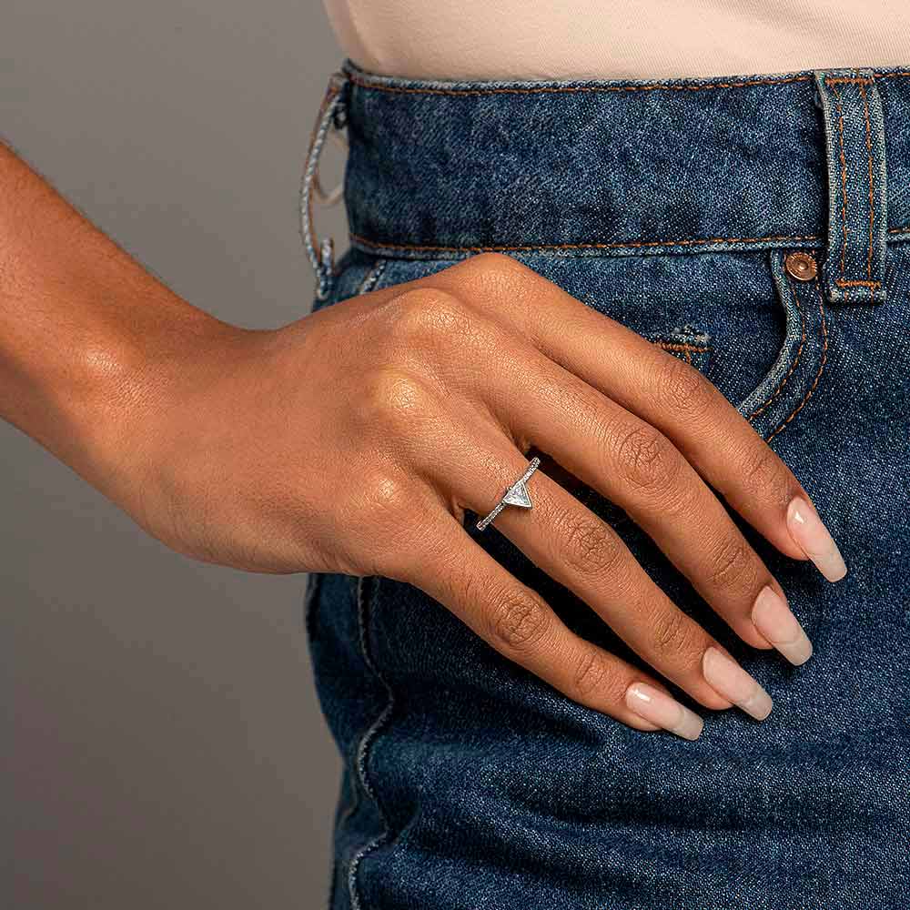 "DESCRIPTION ROMMANEL BRINGS YOU CELEBRATE LIFE BY BRAZILIAN DUO, SIMONE AND SIMARIA, WITH PIECES FULL OF POSITIVE ENERGY AND PERSONALITY. RHODIUM SKINNY RING WITH ONE (1) WHITE TRIANGULAR ZIRCONIA MEASURING 6X6MM AT THE CENTER AND STUDDED WITH FOURTEEN (14) WHITE CUBIC ZIRCONIAS MEASURING 1MM EACH AT THE BAND. | MATERIAL: RHODIUM PLATED.  | ALSO AVAILABLE IN GOLD PLATED. (LICENSED JEWELRY CAPSULE COLLECTION S&S - CELEBRATE LIFE)"